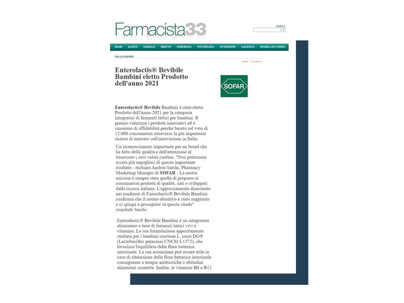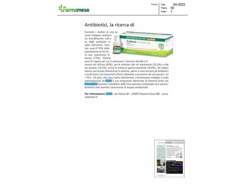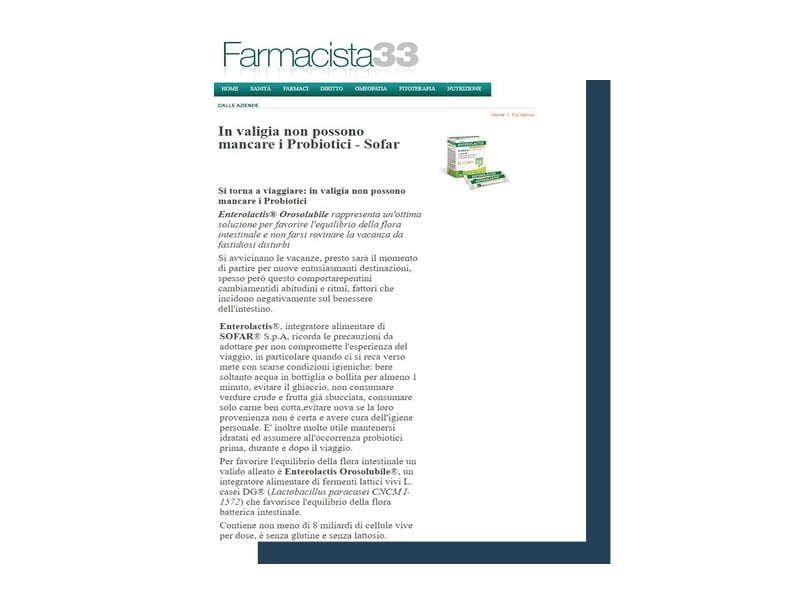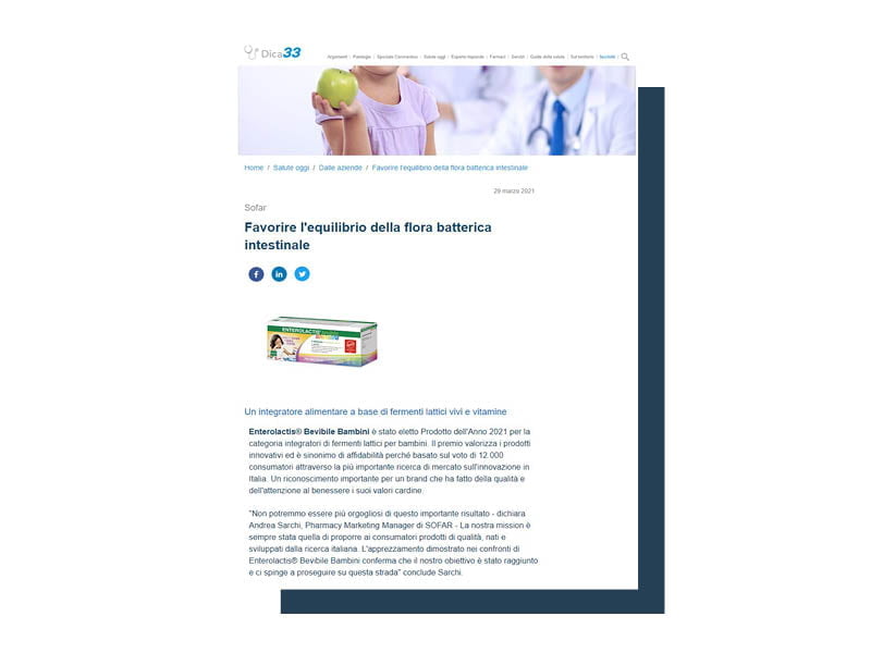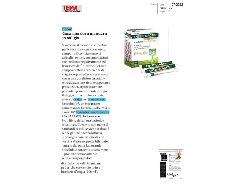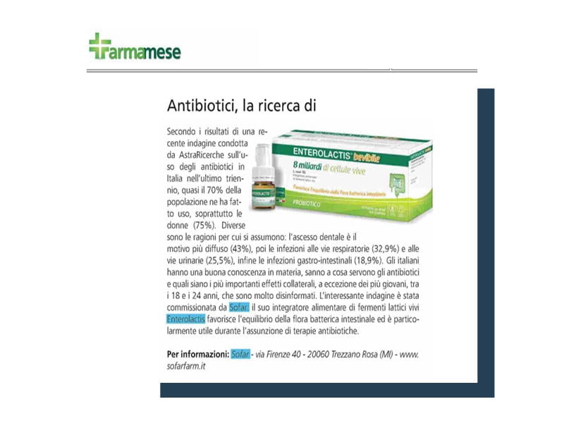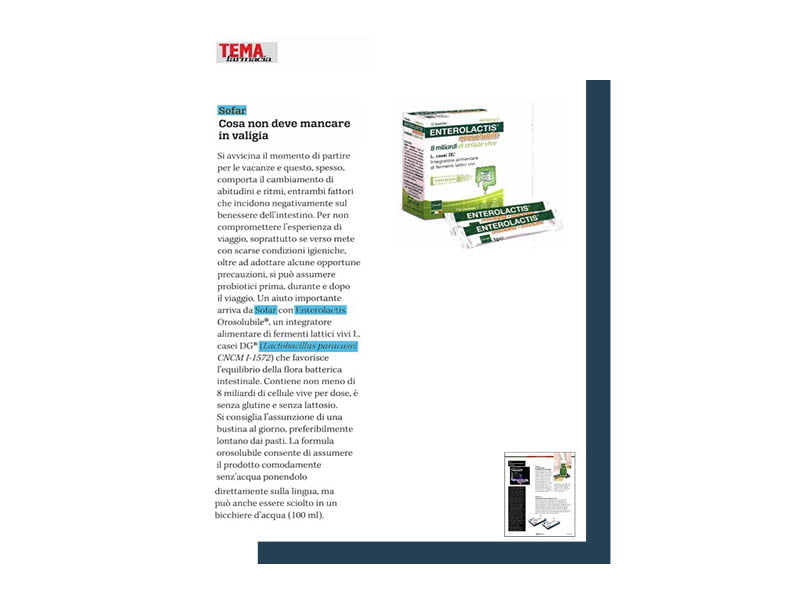 ENTEROLACTIS® is a complete line of probiotics made up of live lactic ferments L. casei DG® to help balance the intestinal microbiota. The brand is part of SOFAR® S.p.A, which offers cutting-edge solutions able to best respond to the therapeutic choices of the Doctor and the self-medication needs of the patient.