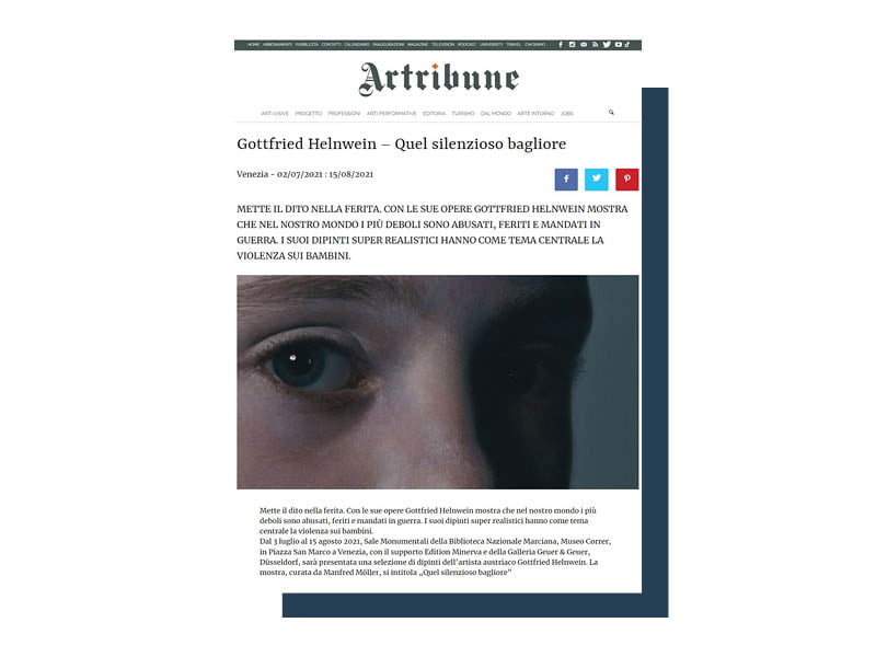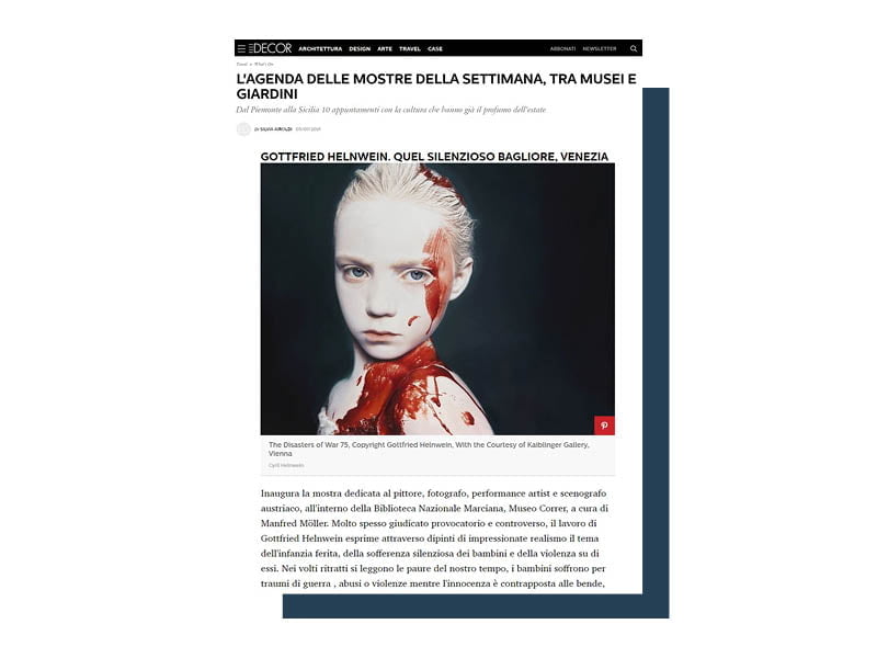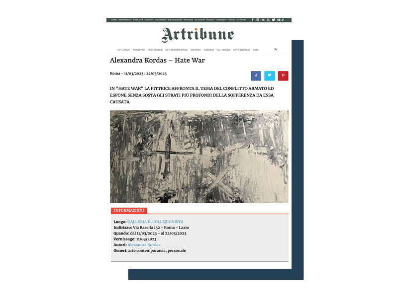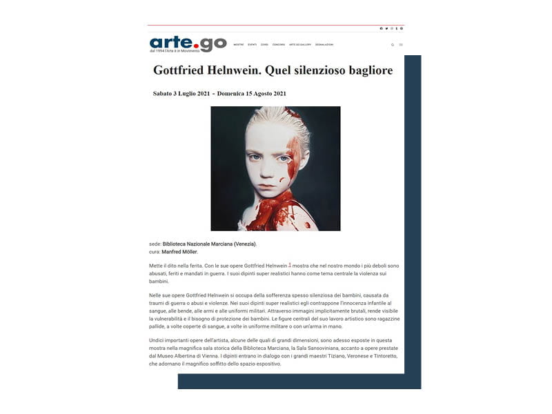 Occuparsi dell’ufficio stampa nel settore dell’arte è molto affascinante. Le opere degli artisti sono un unicum di emozioni, sensazioni, visioni che noi dobbiamo riuscire a trasferire ai media attraverso le parole scritte (comunicati stampa) e orali (media relations). Di seguito una selezione (piccola) degli articoli che il nostro ufficio stampa ha prodotto per la visibilità dei nostri clienti nazionali e internazionali.