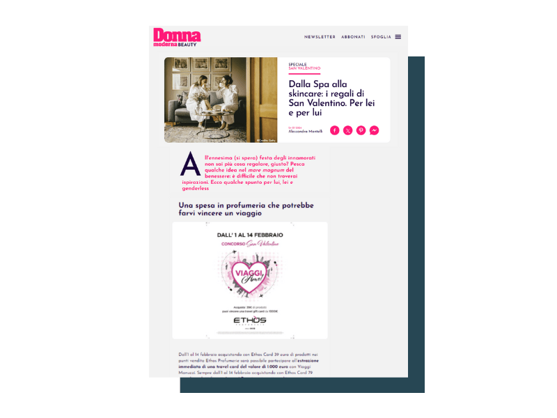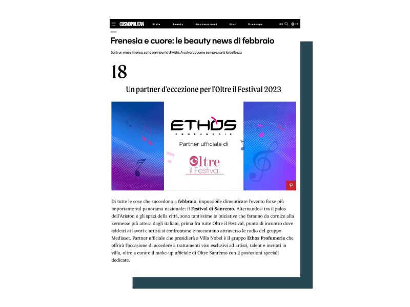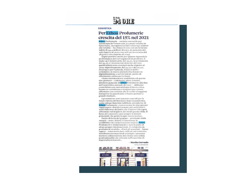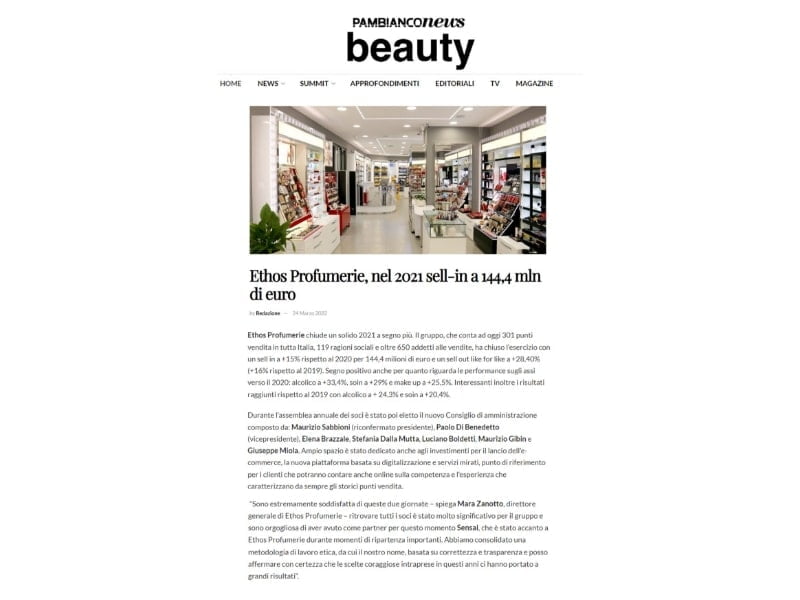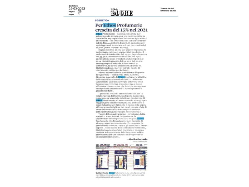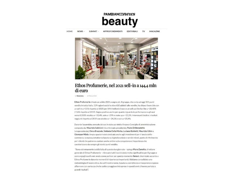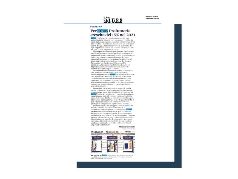 Ethos Profumerie è una Società Consortile per Azioni che conta 308 punti vendita con 119 ragioni sociali. Dal 2014 ci occupiamo di tutte le attività di ufficio stampa e media relations trade e consumer e del social media management di tutti i profili istituzionali.