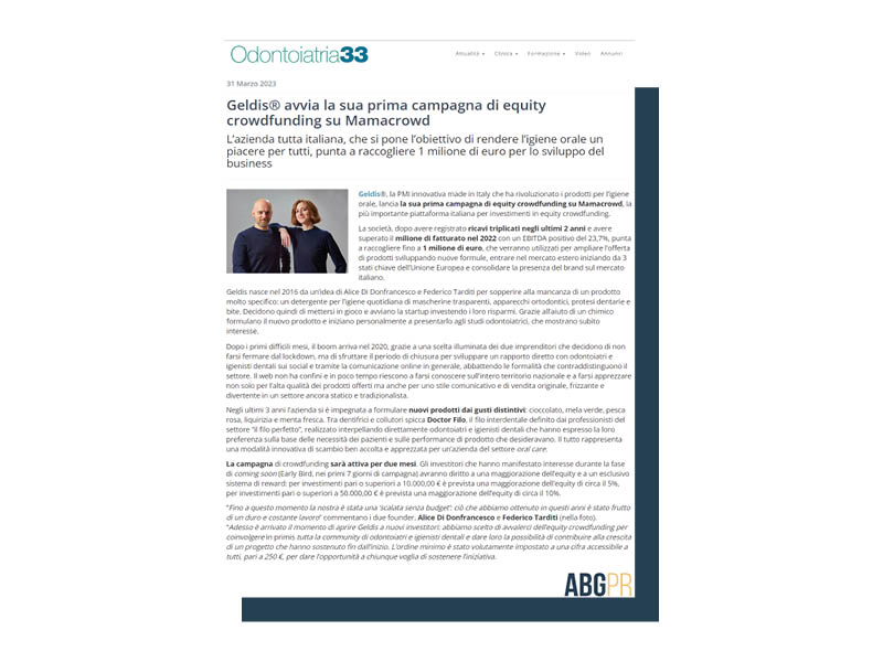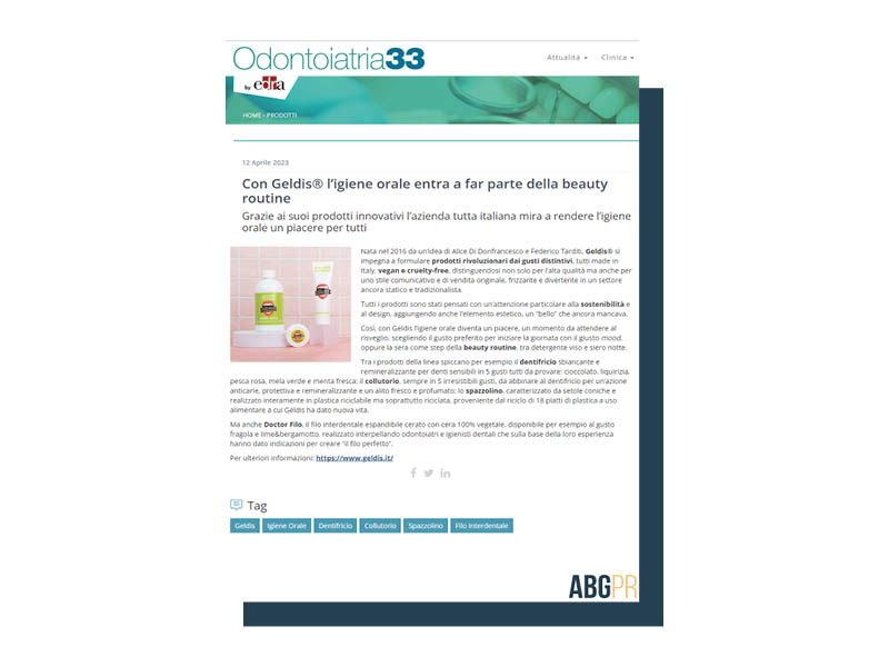GELDIS è una PMI innovativa made in Italy che dal 2016 si impegna a rivoluzionare il settore statico dell’igiene orale, attraverso prodotti efficaci dai gusti distintivi, vegan e con uno stile comunicativo originale, frizzante e divertente. Dal dentifricio al cioccolato, al collutorio al sapore di mela verde, GELDIS punta a eliminare le distanze tra Professionisti e consumatori, aggiungendo un elemento estetico, un “bello” che ancora mancava, per rendere anche l’igiene orale un piacere.