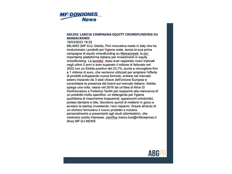 Attraverso l’attività di ufficio stampa e media relations, lavoriamo al fianco di Geldis per costruirne la brand awareness e far diventare i due founder Alice Di Donfrancesco e Federico Tarditi opinion leader del settore.