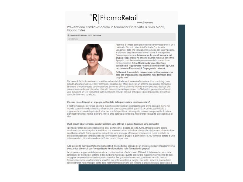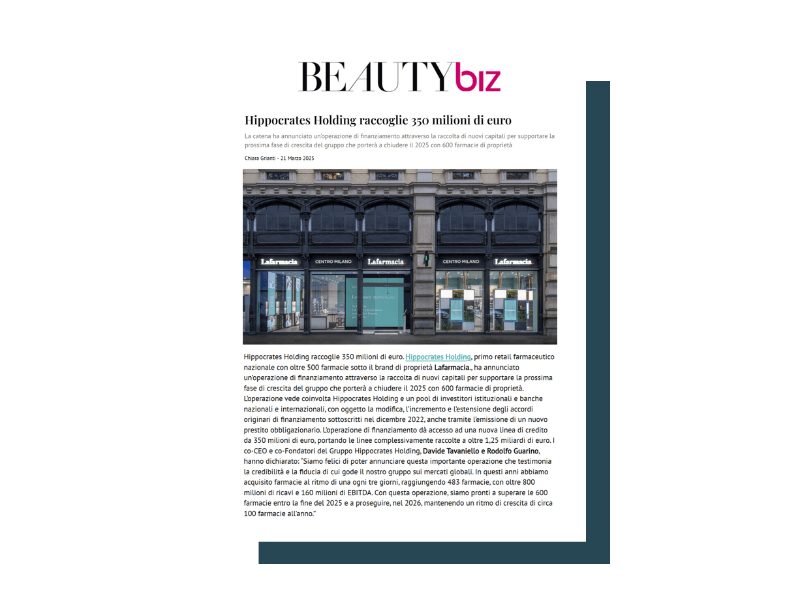 Lafarmacia. è parte di HIPPOCRATES HOLDING Società Benefit S.p.A. , il primo retail farmaceutico nazionale. Ad oggi può contare oltre 530 farmacie con il marchio di proprietà Lafarmacia. in 14 regioni e più di 2500 dipendenti.