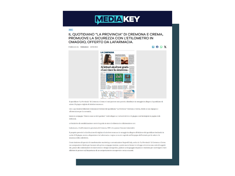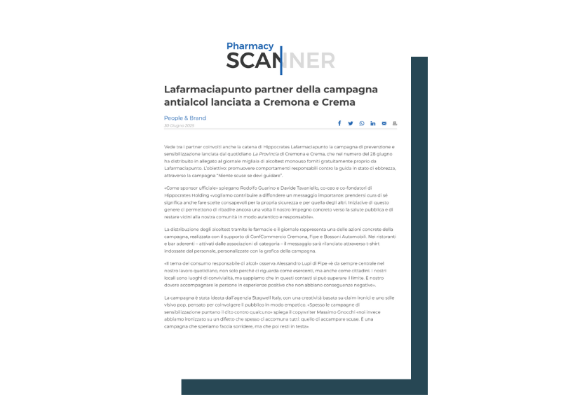 La nostra agenzia supporta Lafarmacia. con una strategia strutturata di public relation per rafforzare la brand awareness e valorizzare il ruolo innovativo che occupa nel panorama della salute e del benessere, con attività di ufficio stampa e digital pr studiate per raccontare una realtà fatta di servizi ai cittadini, prossimità e fiducia.