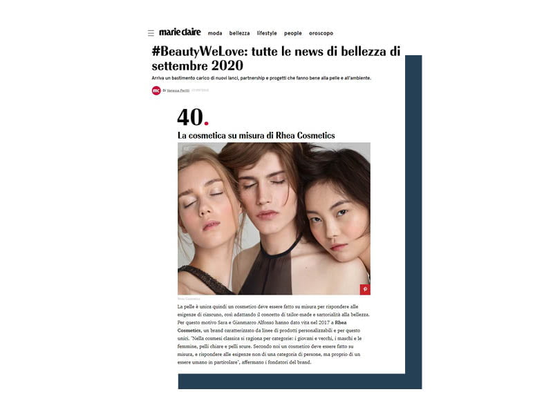 Rhea Cosmetics, la Human Based Skincare, crede fortemente che la pelle sia unica e che un cosmetico debba essere fatto su misura per rispondere alle esigenze di ciascuno. Per questo ha adattato il concetto di tailor-made e sartorialità alla bellezza creando linee di prodotti di altissima qualità personalizzabili e quindi unici.